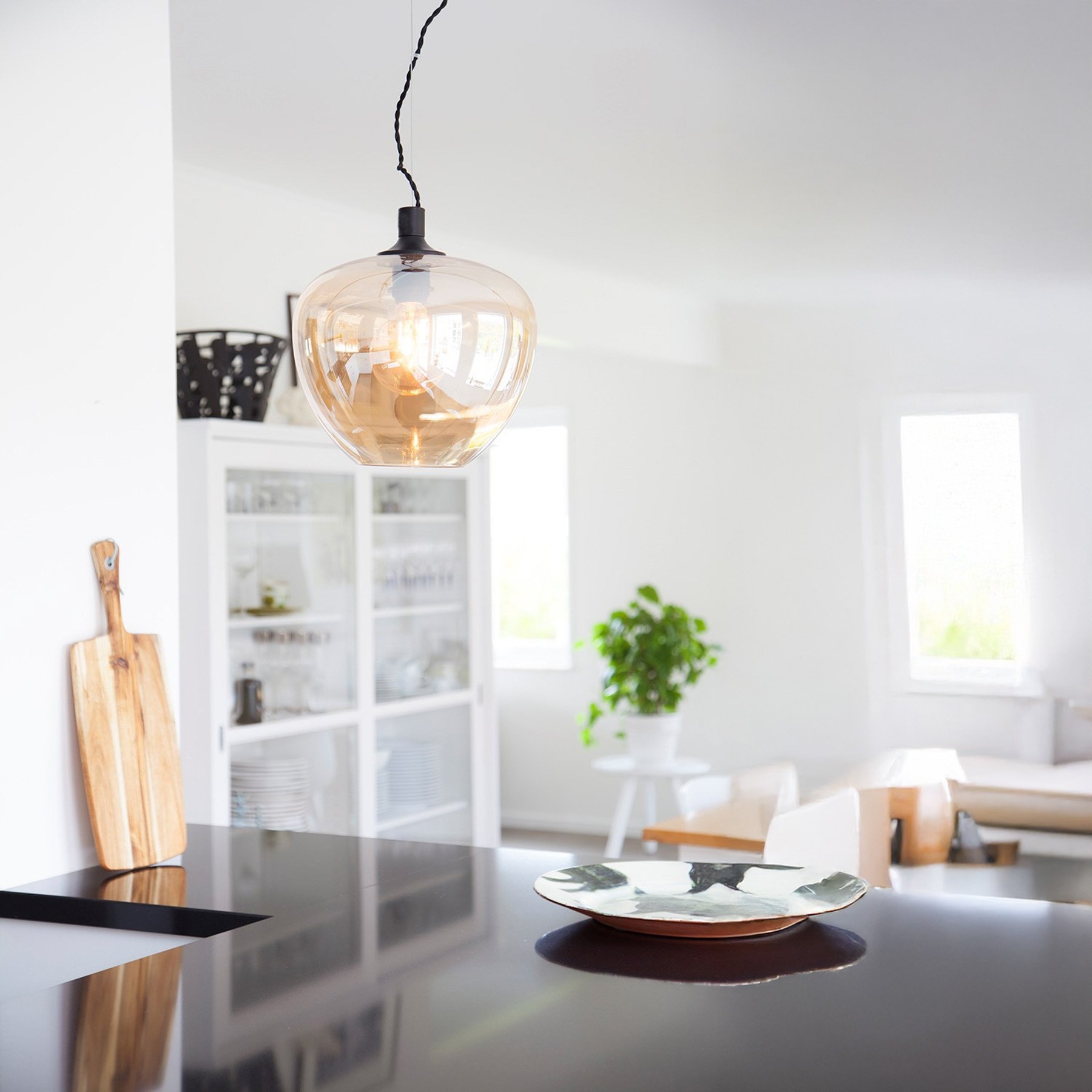 Italiankielinen sana “bellissimo” tarkoittaa suomeksi hienoa, mahtavaa ja fantastista. Vaikka suomalaiseen korvaan tällainen hehkutus kuulostaa suureelliselta, sanat kuvaavat tätä lamppua hyvin. Kattovalaisin on nimittäin upea sisustuselementti jo itsessään, koska siinä on peilipintainen ja herkullisen värinen kupu, jonka väri elää valon vaikutuksesta. Riippuvalaisimen kuvun väri “amber” heijastelee vaalean meripihkan ja kullanruskean sävyjä luoden ihanan lämmintä tunnelmaa ympärilleen. Aidon lasisen luvun läpi kajastava valo antaa aivan omanlaisensa fiiliksen tilaan kuin tilaan.
