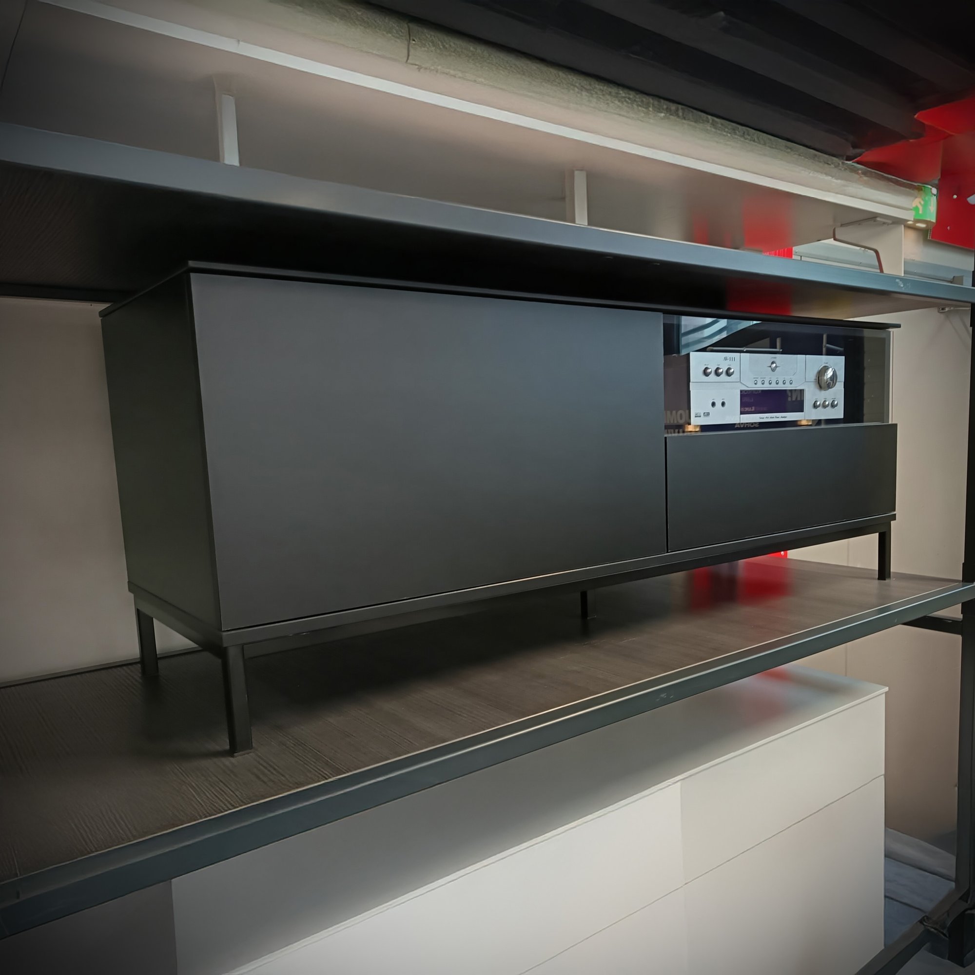 Kotimainen taso, push open mekanismit laatikossa ja ovessa. lev. 134cm, syv 45cm, kork. 52cm, uudenveroinen