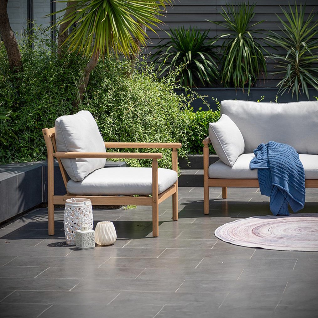 Alsvik-nojatuoli on kestävä eucalyptuspuusta valmistettu puutarhakaluste, jossa mukavat vaaleat pehmusteet. Täydellinen ulkotiloihin ja säänkestävälle käytölle.