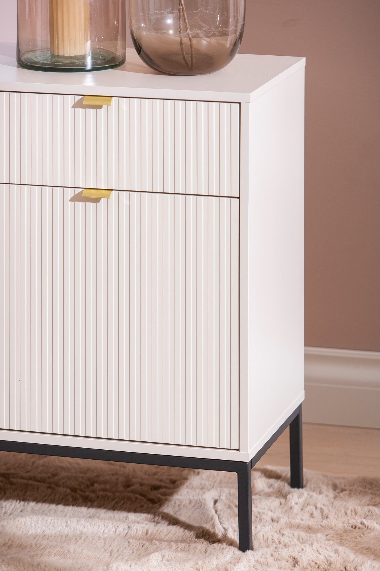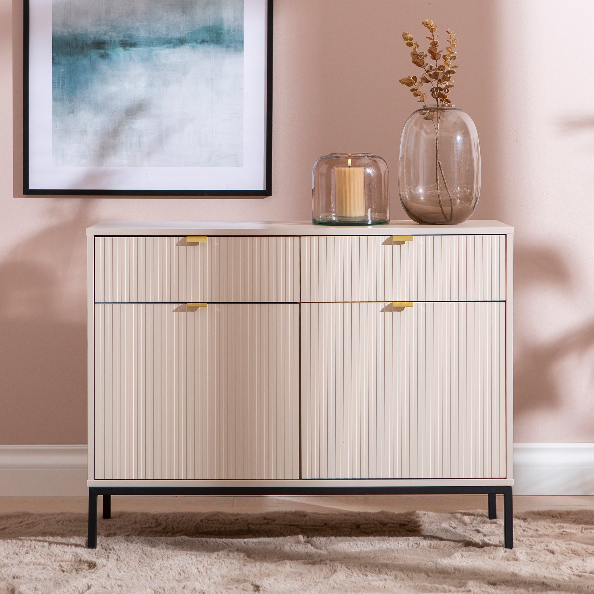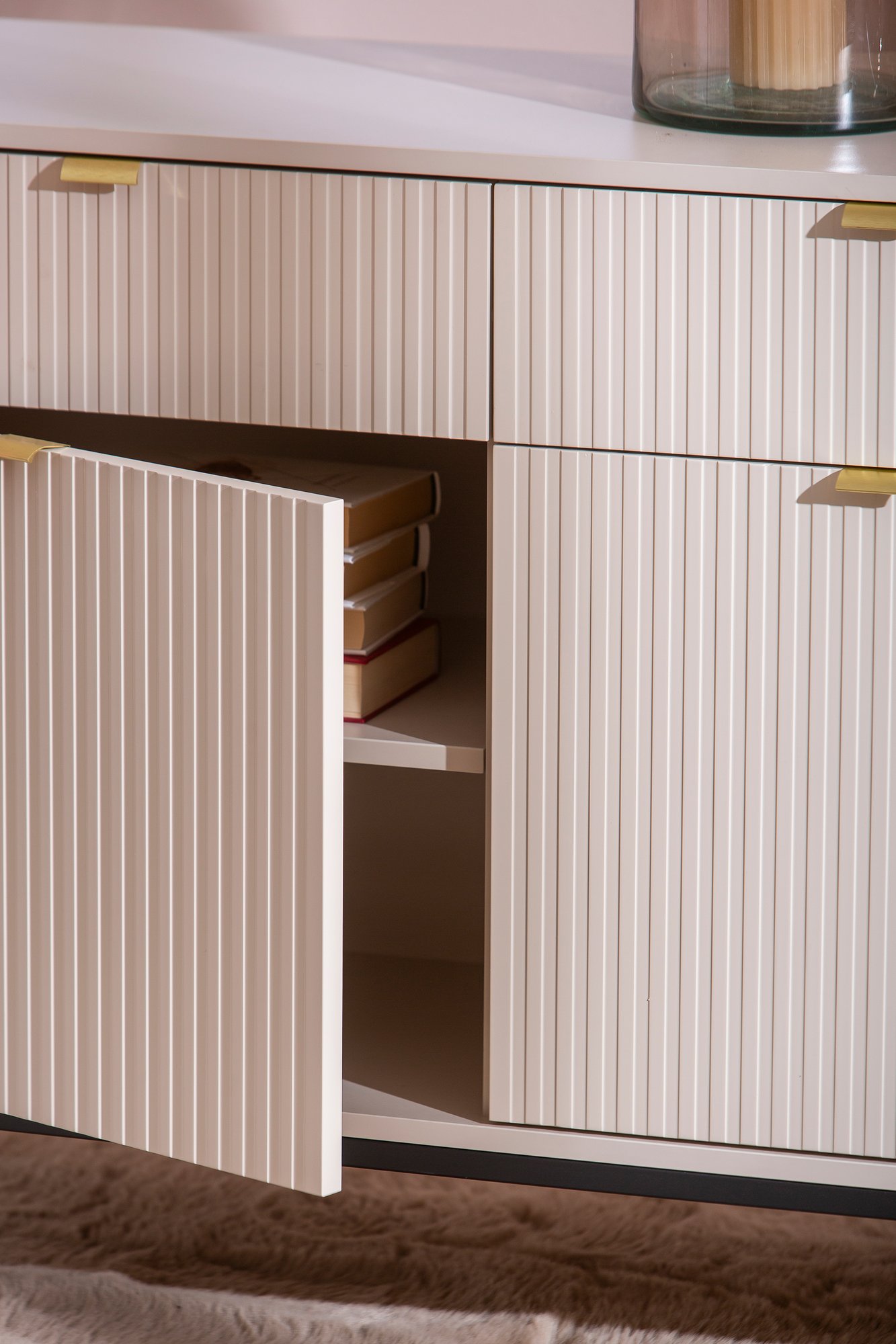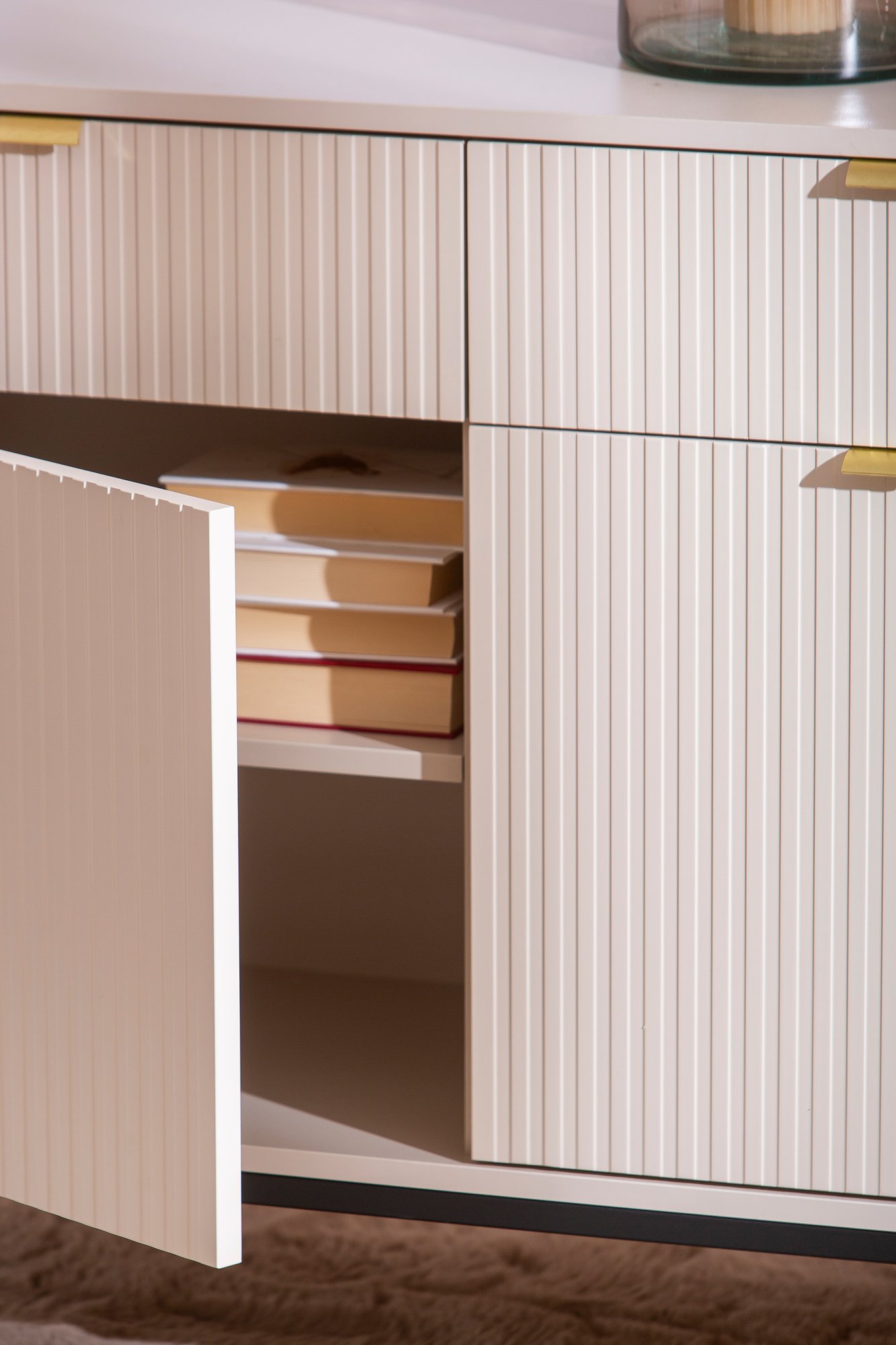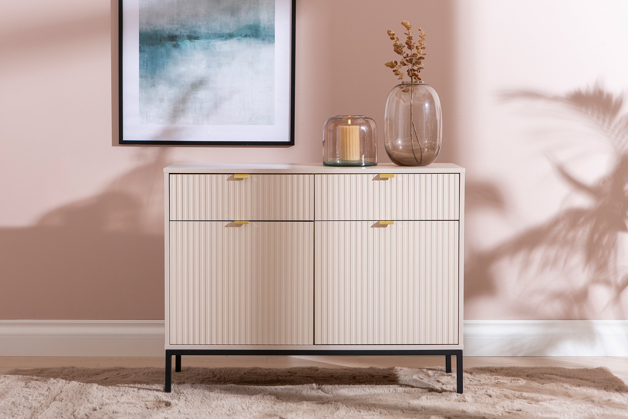 Caisa senkissä yhdistyy elegantti muotoilu ja harmoninen ulkonäkö. Senkin runko on valmistettu kalustelevystä ja sirot metallijalat korostavat sen kevyttä ilmettä. Beige väri tuo lämpöä ja pehmeyttä sisustukseen. Yksityiskohtana ovat kullanväriset vetimet ja uraovet. Tyylikkäät yksityiskohdat tekevät senkistä elegantin, sopien täydellisesti niin moderniin kuin klassiseen sisustustyyliin. Senkki on sopiva erilaisten tavaroiden, kuten astioiden, kirjojen ja koriste-esineiden säilyttämiseen, pitäen kaiken käden ulottuvilla ja siististi järjestyksessä. Caisa senkki toimii erinomaisesti esimerkiksi eteisessä, olo- tai makuuhuoneessa.