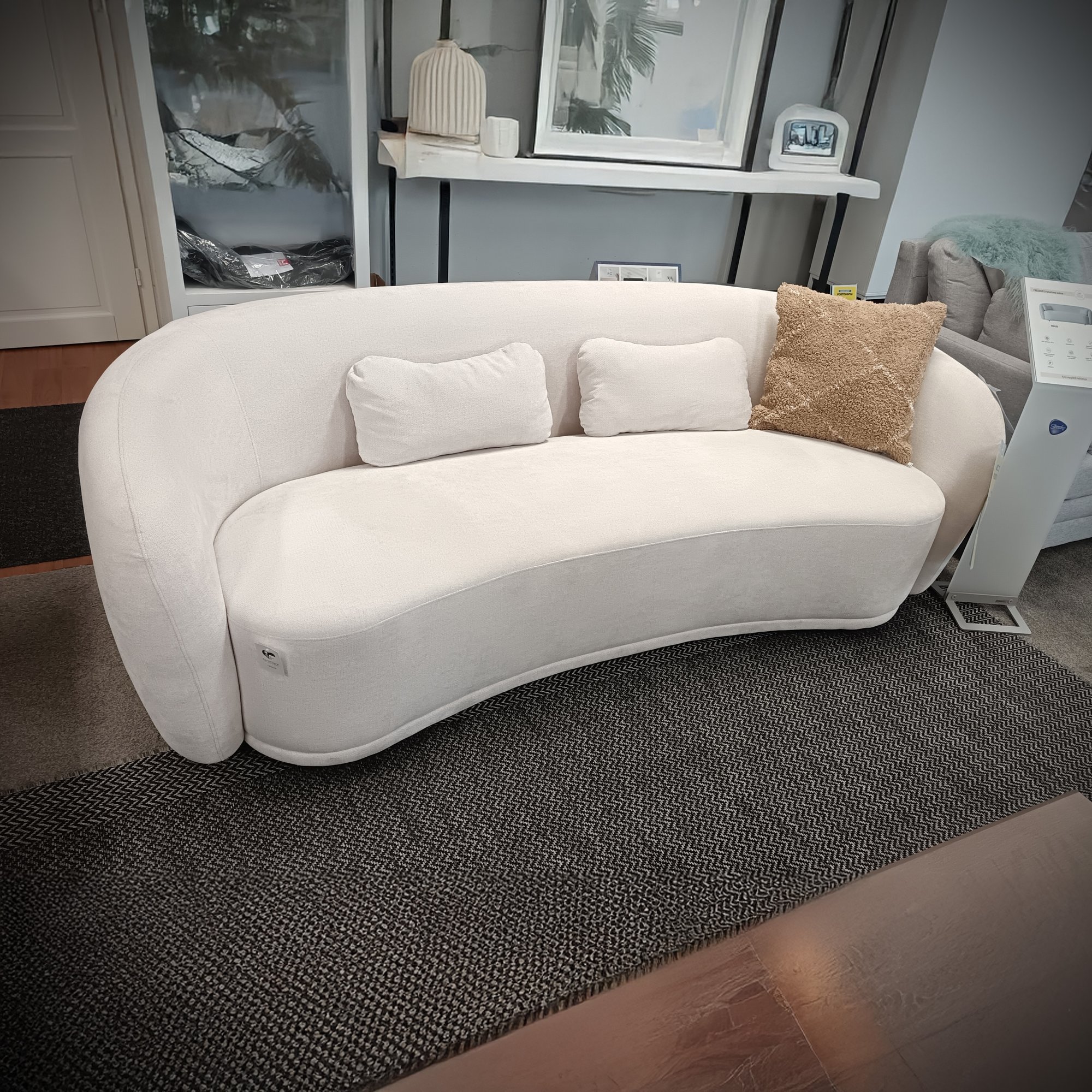 kaareva sohva, lev. 216cm, syv. 97cm, kork. 72cm, uudenveroinen