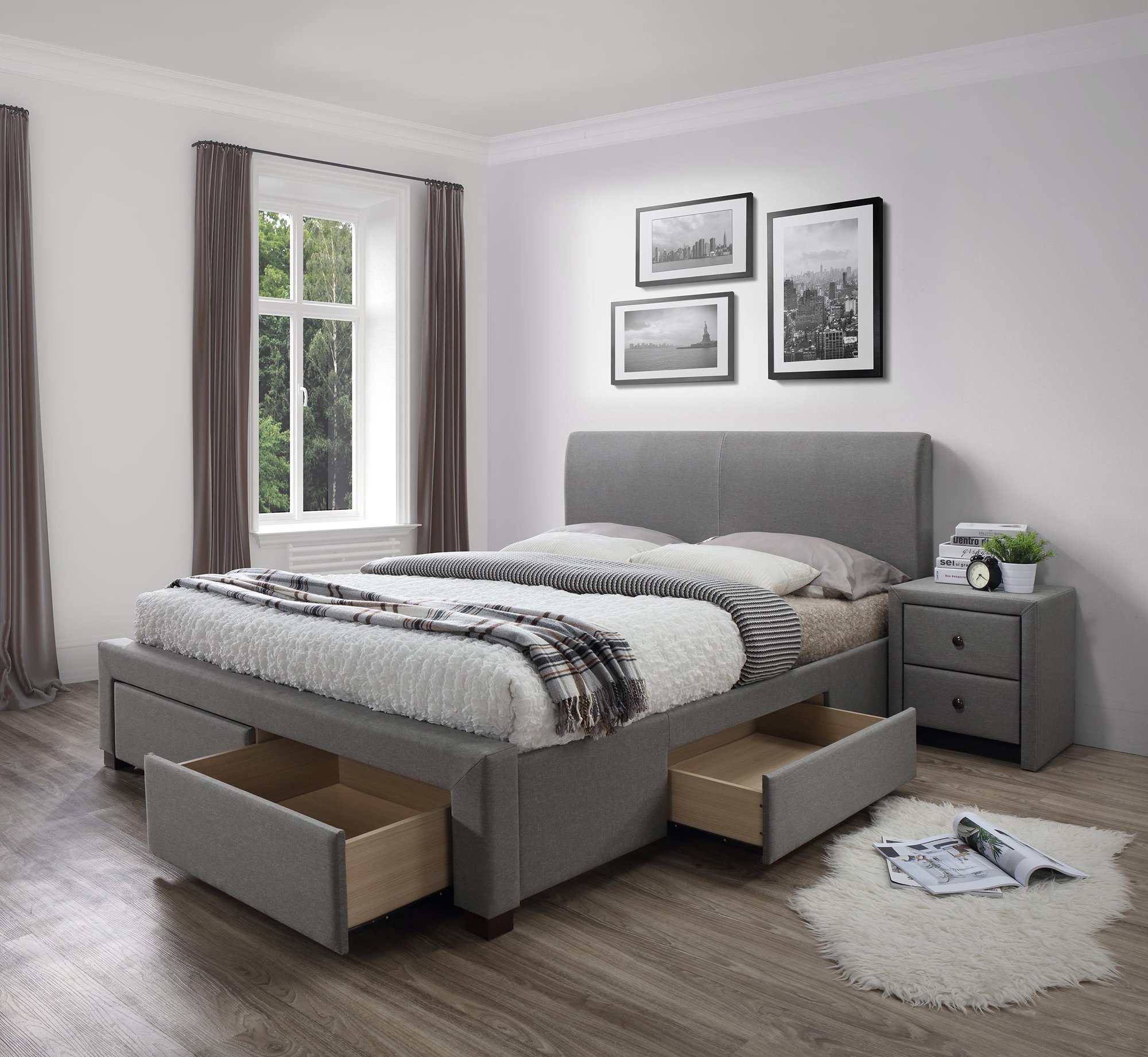 Veera sängynrunko 180x200 säilytyslaatikoilla, harmaa