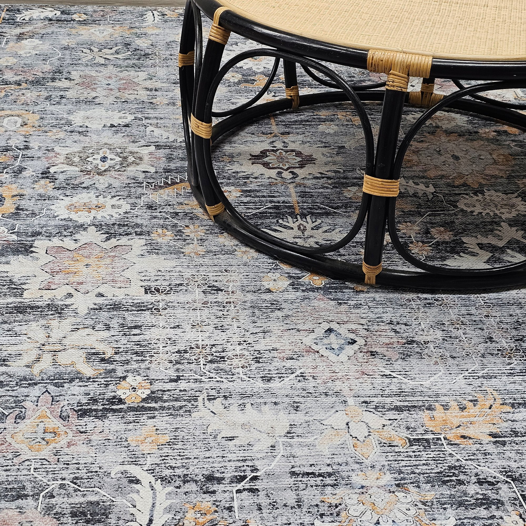 Vintage-henkinen polypropeenimatto tarjoaa tyylikästä ja kestävää sisustusta olohuoneeseen tai ruokailutilaan. Harmaan ja siniharmaan sävyjen lisäksi vaaleanpunaiset ja beiget koristekuviot luovat kodikkaan tunnelman. Helppohoitoinen ja vahva materiaali sopii erityisesti vilkkaisiin koteihin, joissa tarvitaan kaunista ja käytännöllistä mattoa.